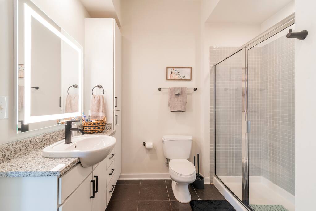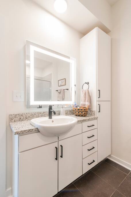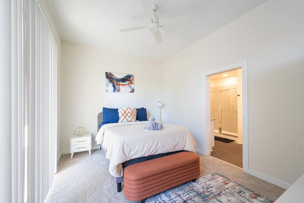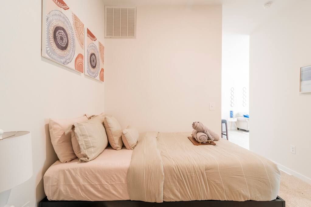 It’s a spacious two-bedroom setup featuring two queen beds and a pull-out sofa. The layout includes a Jack-and-Jill style bathroom and an open-concept design for the bedrooms, which creates a bright and airy feel. Please note that the bedrooms do not have traditional privacy doors. Located in the vibrant heart of Charlotte, this apartment offers easy access to all the city has to offer, while providing a peaceful retreat for your stay. Thoughtfully designed with your comfort in mind, our unit is fully equipped with everything you need for a relaxing and enjoyable stay away from home.
