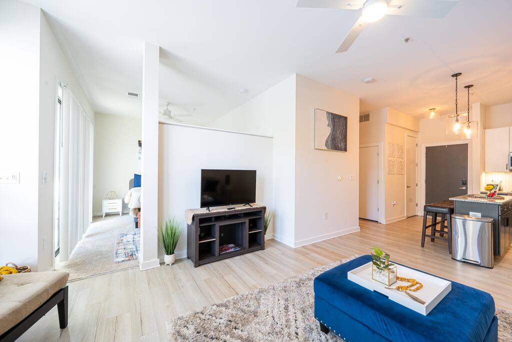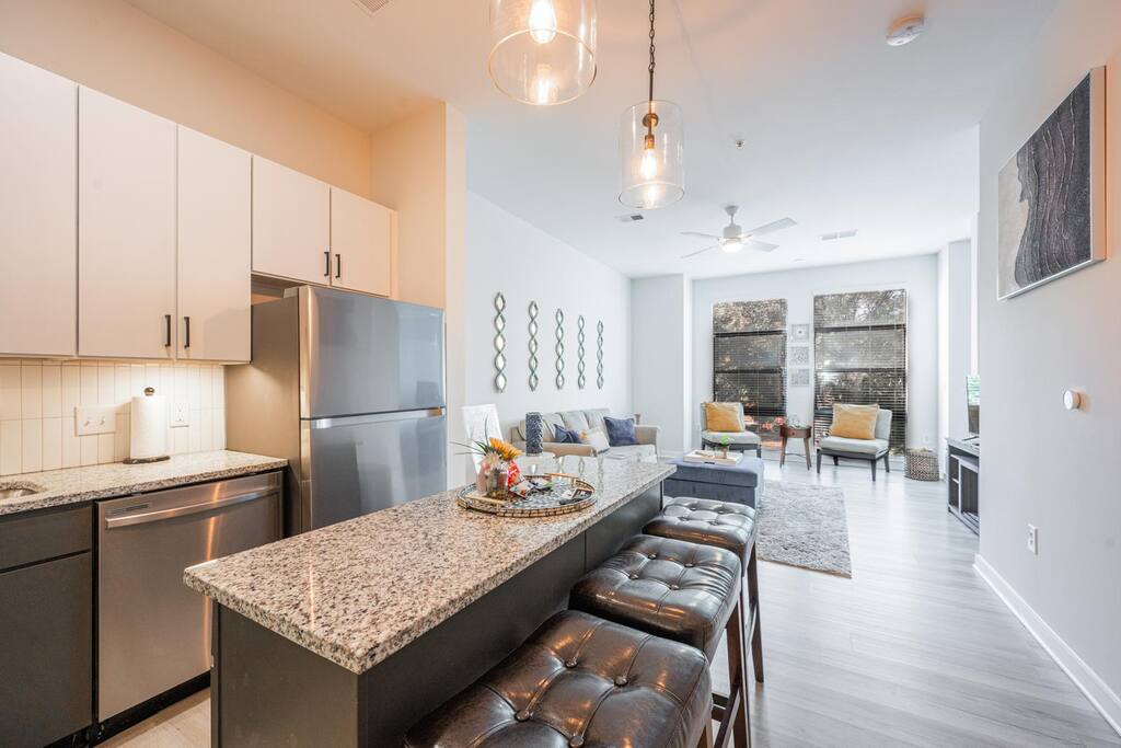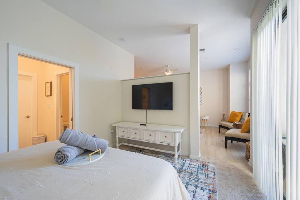 Forget your worries in this spacious and serene space ★ Self Check-in ★ Fully stocked kitchen ★ Washer and Dryer ★ Heating and Air Conditioning ★ High-Speed WiFi ★ Smart TV ★ Free Parking Our Apartment Features: ★ Pool (NOW OPEN) ★ Balcony ★ 24/7 Fitness Center ★ Two Grilling Stations ★ Workspace Desk ★ Walk-in Closet ★ Glass Shower Our Complimentary Items: ★ Bed and Bath Linen ★ Hand Soap ★ Hair Dryer ★ Essential Cooking Supplies ★ Keurig Coffee Maker ★ Coffee and Tea